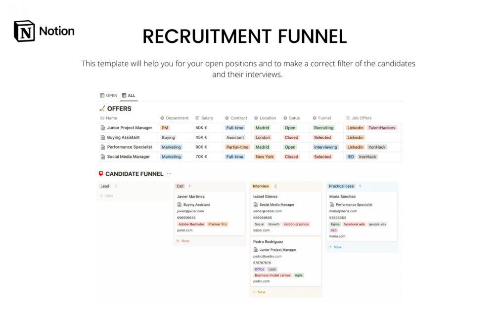 This template will help you for your open positions and to make a correct filter of the candidates and their interviews.